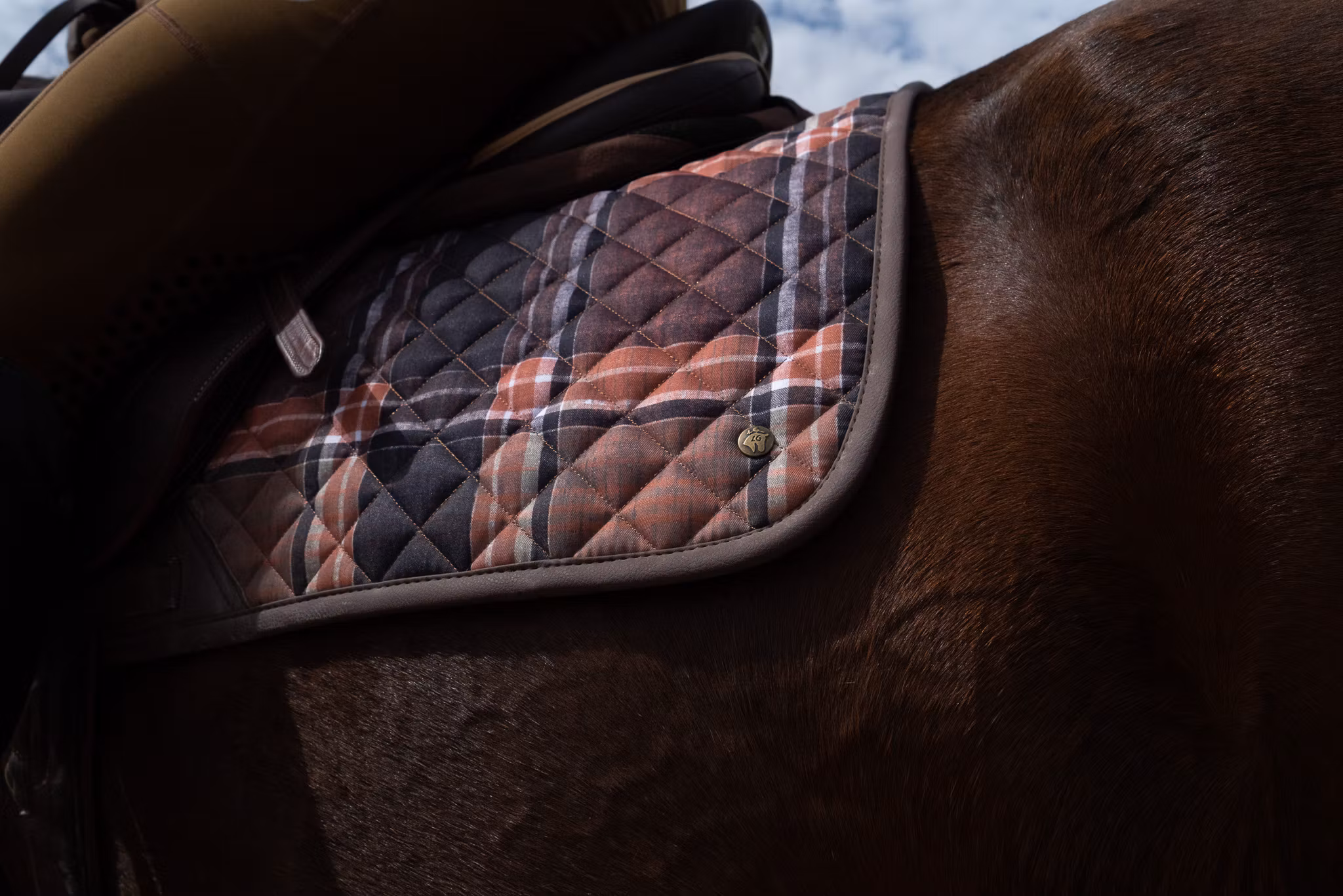 16C hoppschabrak i klassiskt rutigt, med kantband i cognacsfärgat, veganskt läder.