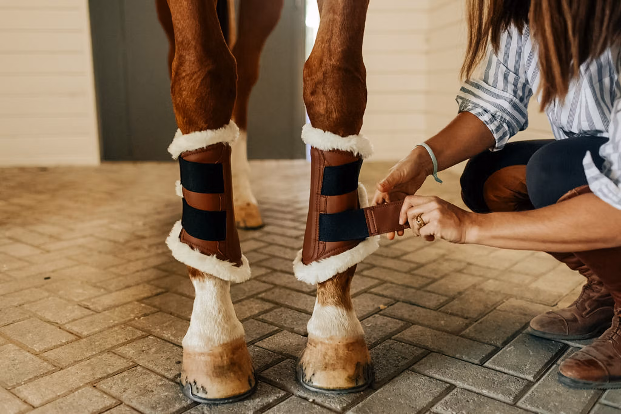 Dessa eleganta strykkappor från Sixteen Cypress kombinerar komfort, hållbarhet och en tidlös design. De är tillverkade i mjukt och slitstarkt veganskt syntetläder med ett mjukt fleecefoder som ger optimal komfort och skydd för hästens ben.